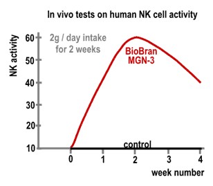 Source: Ghoneum M., Drew University. “Enhancement of human natural killer cell activity by modified Arabinoxylan from rice bran (MGN-3)”, INT. IMMUNOTHERAPY XIV (2) 89-99,1998